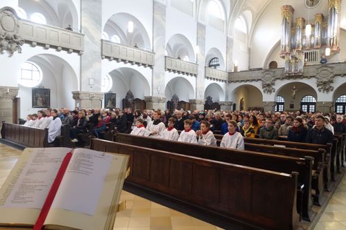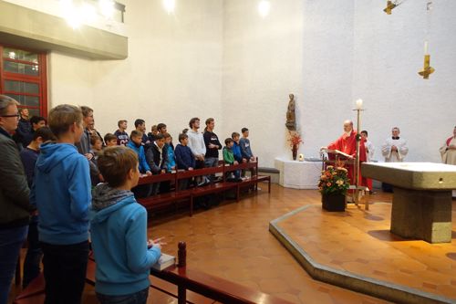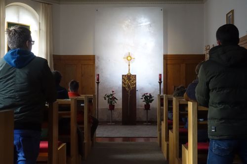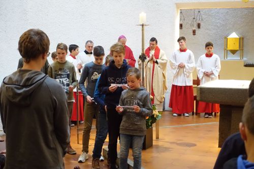 Das Wochenende begann mit einer Messe, die der Augsburger Weihbischof Florian Wörner im Bistumshaus St. Ulrich für die Gruppe zelebrierte. In seiner Predigt erklärte der Bischof, der lange Jahre als Jugendseelsorger tätig war, das Gebet als Ort und Ausdruck einer persönlichen Freundschaft: „Mit einem Freund bin ich gerne zusammen und nehmen mir auch immer wieder Zeit für ihn.“ Vier konkrete Ratschläge gab der Oberhirte den Jungen für das persönliche Gebet mit: „1. Immer mit Dank beginnen, 2. Auch die Bitten vor Gott tragen, 3. Mit der Hl. Schrift beten, 4. Auch Anbetung und Lobpreis entdecken.“