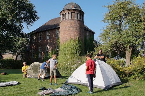 Als sportliche Herausforderung erwartete die Söhne und Väter eine ca. 40 km lange Fahrradtour von Kamp-Lintfort nach Meerbusch. Wobei auch das Wetter wunderbar mitspielte. Angekommen bauten die Söhne zusammen mit den Vätern die Zelte auf und nahmen an einer kniffligen Vater-Sohn-Schnitzeljagd teil, die von den Betreuern vorbereitet worden war. Gemeinsamer Lobpreis, Evangeliumsbetrachtung und die Möglichkeit zum Empfang des Sakraments der Versöhnung standen ebenfalls mit auf dem Programm.