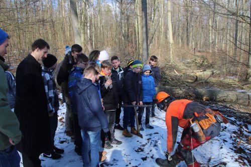 Der gelernte Förster Simon Memmel berichtete den Jungen von seinem Arbeitsalltag. Dabei wurde deutlich, dass der verantwortliche und nachhaltige Umgang mit der Schöpfung Gottes vom Menschen auch Respekt und Einsatz erfordert.