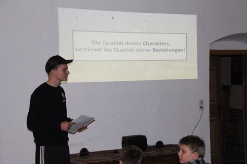 Dass gute Freundschaften wichtig für ein glückliches Leben sind, erläuterte Teamleiter Pius Grammetbauer anhand einer Harvard-Studie mit folgendem Dreischritt: Die Qualität deiner Beziehungen bestimmt die Qualität deines Lebens. Die Qualität deines Charakters bestimmt die Qualität deiner Beziehungen. Die Qualität deines Umfelds bestimmt die Qualität deines Charakters. „Gute Freundschaften sind folglich kein Glücksspiel, sondern können durch gute Charakterbildung aufgebaut werden“, so das Fazit des Studenten.