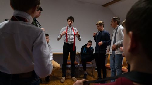 „Die Höflichkeit entspringt unserem christlichen Menschenbild. Jeder Mensch ist Abbild Gottes, hat deswegen einen unendlichen Wert und verdient Respekt“, erläutert Teamleiter Simon während seines Workshops, in dem er gemeinsam mit den Jungs einen Filmausschnitt analysiert. Er fährt fort: „Höflichkeit und Hilfsbereitschaft im Alltag stärken unser Bewusstsein für unser Gegenüber. Das ist das christliche Ideal, das Jesus uns im Gleichnis des barmherzigen Samariters vorstellt.“ Ein christlicher Gentleman benimmt sich selbst gut, aber begegnet auch anderen mit Nächstenliebe und Hilfsbereitschaft.