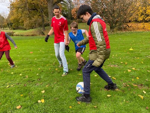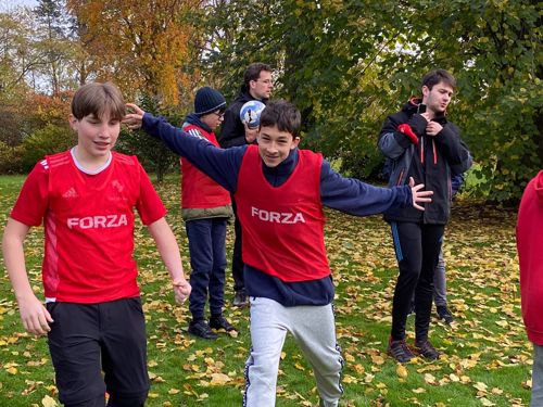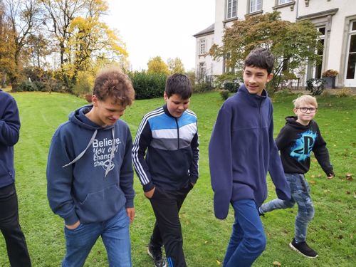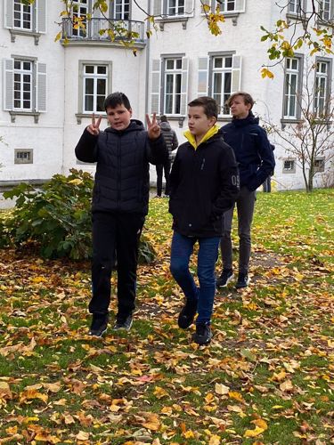 Das Einhalten von Regeln übten die Jungen gleich mal bei einer „Scotland-Yard-Ralley“. „Wir haben das bekannte Brettspiel in echt gespielt: In den Straßen von Angermund mussten die Teams, die über eine App verbunden waren und den Standort der anderen sahen, einen Verbrecher jagen und hinter Gitter bringen“, erzählte P. Raphael. „Bei den Teamspielen im Freien und Brettspielen haben sich die Jungs dann genauer an die Regeln gehalten“.