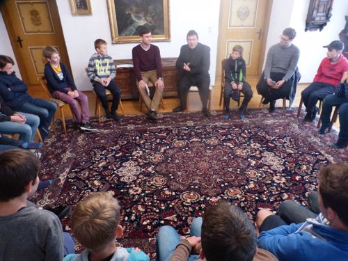 Nach der Vorstellung bohren die interessierten Jungen den Beamten mit vielen neugierigen Fragen, und die Antworten enttäuschen sie nicht: Der erfahrene und leidenschaftliche Polizist berichtet aus seiner 37-jährigen Erfahrung von einer rasanten Verfolgungsjagd, dummen Ausreden Krimineller, wie er einem Kollegen, der angegriffen wurde, das Leben rettete, über die Freude, nach aufwendigen Ermittlungen Täter zu fassen, aber auch über die Trauer, einem Kind, das Opfer eines Verkehrsunfalls wurde, nicht mehr helfen zu können. „Wer sich an die 10 Gebote hält, der hat eine solide Grundlage. Oft ist es die Gier, die den Menschen auf Abwege bringt. Der christliche Glaube bietet einen guten Schutz gegen das Abrutschen in die Kriminalität, und deshalb ist es wichtig, dass es Gruppen wie die eure gibt!“ resümiert der Kriminalkommissar die über dreistündige Begegnung.
