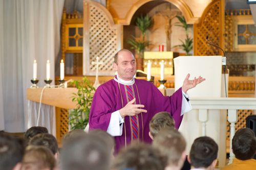 Das GetStrong-Treffen begann im ApostelHaus mit Lobpreis und heiliger Messe, die Pater Leonhard Mayer LC mit den Jungen feierte. Er erklärte in seiner Predigt, warum es so wichtig sei, im persönlichen Glaubensleben zu wissen, was der Grund und der Ansporn dafür sind. „Wenn ich weiß, warum ich glaube, kann ich auch in meinem Umfeld mutig zu Jesus stehen“, betonte er.
