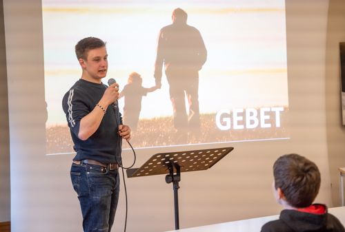 „Gott hat einen Ort geschaffen an dem er uns begegnen möchte und dieser Ort ist das Gebet“, erzählte Joel Stefke den Teilnehmern in einem Abschlussvortrag am Sonntag. Er erklärte den Jungen den Sinn und die Wirkung des Gebets und machte deutlich, welch großer Schatz in der lebendigen Beziehung zum Herrn liegt.