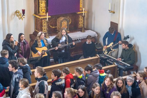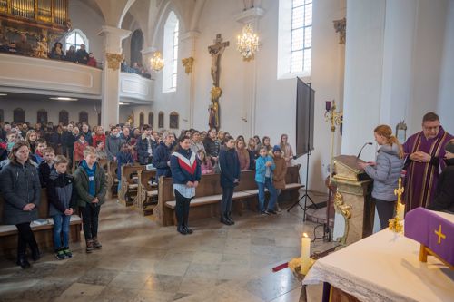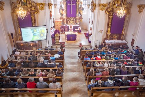 Zum Abschluss feierten die Teilnehmer einen gemeinsamen Gottesdienst mit den Mädchen, die am gleichen Wochenende ihr LookingGood-Treffen hatten, sowie allen Eltern und Familien in der übervollen Pfarrkirche in Tacherting.