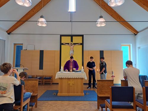 Am Abend hatten die Betreuer verschiedene Spiele vorbereitet, die Einsatz verlangten, um mit den Gewinnen am Schluss Preise ersteigern konnten. Den Abschluss bildete eine eucharistische Anbetung, um den Tag mit Jesus als bestem Freund zu beenden, gemäß dem Ideal des ECYD: „Die Kinder und Jugendlichen bemühen sich, Jesus täglich tiefer zu verstehen, mehr zu lieben und eine vertraute Freundschaft mit ihm zu pflegen, denn die Umgestaltung der Welt beginnt im eigenen Herz“ (Statuten des ECYD Nr. 7 § 1). Nach der Sonntagsmesse in der Forchheimer Pfarrkirche „Verklärung Christi“ traten die Jungs im Kahoot-Quiz gegen ihre Eltern und Geschwister an, um ihre Kenntnisse über Messe und Eucharistie unter Beweis zu stellen. Da der Sonntag nicht zur Fastenzeit gerechnet wird, wartete auf den Sieger eine süße Stärkung, gemäß dem lateinischen Hymnus: „Jesu dulcis memoria, dans vera cordis gaudia: sed super mel et omnia, eius dulcis praesentia.“ Deutsche Übersetzung: „Süß ist das Gedenken an Jesus, es schenkt die wahren Herzensfreuden: aber über Honig und allesgeht seine süße Anwesenheit.“