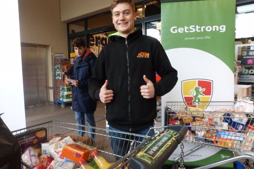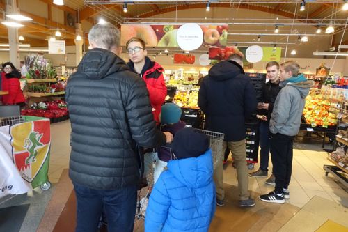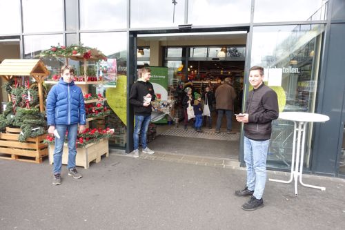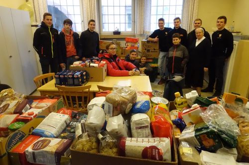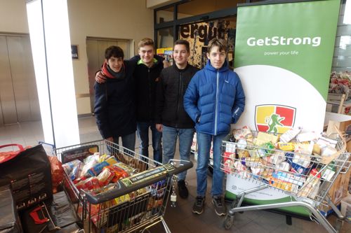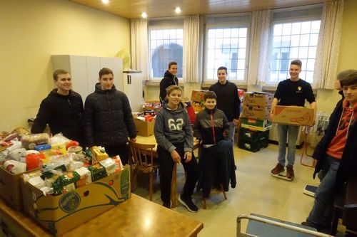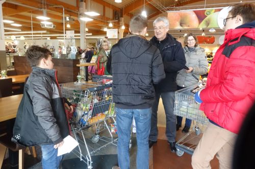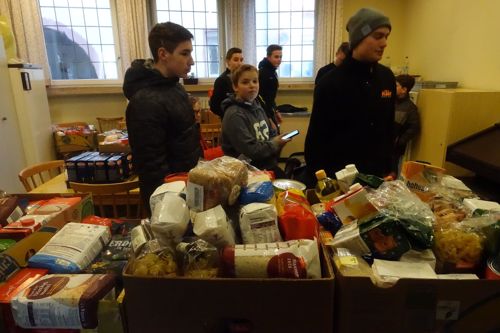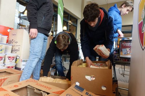 Bei der Aktion Kilo luden die Jugendlichen Kunden in drei Supermärkten dazu ein, ein Kilo mehr an haltbaren Lebensmitteln einzukaufen und dieses zu spenden. Gesammelt wurde für die Elisabethenstube, in der die Erlöserschwestern im Zentrum von Würzburg warme Mahlzeiten und offene Herzen für Bedürftige anbieten. Am Ende des Vormittags kamen als Sammelergebnis stolze 523 Kilo auf die Waage. Schwester Helma begrüßte die Gruppe und bedanke sich für das Engagement der jungen Leute.