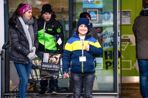 Wind, Regen, Temperaturen knapp am Gefrierpunkt: Unangenehmeres Wetter hätte es für die rund 70 ECYD-Jugendlichen bei der „Aktion Kilo“ in Wels in Oberösterreich wohl kaum geben können. Doch sie trotzten den Bedingungen und hielten für den guten Zweck durch. Bei der Übergabe von 3.500 Kilogramm Lebensmittel und Hygieneartikel an drei Einrichtungen für Bedürftige waren alle Widrigkeiten schnell vergessen.