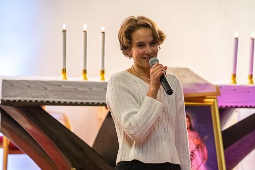 Schwester Ingrid von den Kreuzschwestern in Linz ließ es sich einmal mehr nicht nehmen, in Wels vorbeizuschauen, um ein aufrichtiges Danke für die wiederholte Unterstützung zu sagen. Sie stellt sich seit beinahe drei Jahrzehnten in jugendlicher Frische unermüdlich in den Dienst armer Familien in Rumänien, verbringt dort bei Hilfseinsätzen die Hälfte des Jahres. „Ich bin wirklich fasziniert von diesen jungen Menschen, ihrer Begeisterung und ihrem Strahlen, sagt sie. „Ich darf zusagen, dass überall Betlehem ist“, richtet sie ihre Botschaft an die Burschen, Mädchen und erwachsenen Begleiter: „An allen Orten kannst du IHN finden: im Kind, das Angst und Hunger hat, in der Frau, die verlassen wurde, im Vater, der sich um die Zukunft sorgt, in der alten Frau, die nichts mehr erhofft. Überall ist Betlehem und dicht daneben ist das Hirtenfeld. Der Hirt bist du, die Hirten seid ihr! Nur ein Schritt, ein Blick – und du bist da, bei Christus, dem Gottes- und Menschensohn! Ein Stück der Freude von Betlehem ist die Freude, die du gibst!“