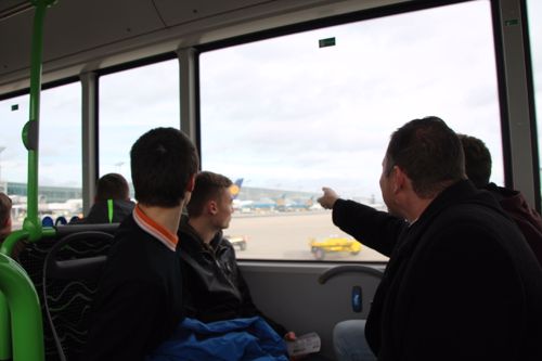 Die 20 Teilnehmer trafen sich mit P. Martin Baranowski LC und Br. Johannes Paul Jäger LC am Frankfurter Flughafen und starteten gleich mit einer zweistündigen Rundfahrt über das Rollfeld, vorbei an den verschiedenen Einrichtungen des Fraports. Hier wird die durch die moderne Luftfahrt erlangte Bewegungsfreiheit deutlich: Flugzeuge aus Kanada, USA, China, Vietnam, Russland, Island, Iran, Südafrika und den Emiraten sind Boten der weiten Welt. Über 100 Fluggesellschaften bringen mit täglich 715 Starts und ebenso vielen Landungen jährlich über 70 Millionen Fluggäste an 311 Flugziele. 81.000 Mitarbeiter und 3.000 Polizisten stehen mit 20.000 Fahrzeugen im Dienst dieser Freiheit. Jeder Start erinnert in gewisser Weise an den Song von Reinhard Mey: „Über den Wolken muss die Freiheit wohl grenzenlos sein. Alle Ängste, alle Sorgen sagt man blieben darunter verborgen. Und dann würde, was uns groß und wichtig erscheint, plötzlich nichtig und klein.“