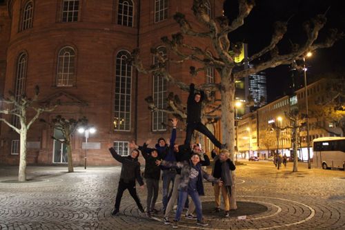 Nach dem Abendessen erwartete die Gruppe noch eine Stadtrallye, die Teamleiter Joachim Fuhr entworfen hat. Er führte die Teams zur Paulskirche, in der im 19. Jh. das erste gewählte deutsche Parlament tagte. Was bedeutet es für uns, in Freiheit zu leben? „Jeden Tag wachen wir im Unterschied zu anderen gleichaltrigen Kindern in einem Land auf, wo wir keine Angst vor Unterdrückung, Krieg oder anderen schlimmen Dingen haben müssen. Stattdessen können wir uns frei bewegen, uns in der Gesellschaft und Politik engagieren und sind frei in unserer Lebensgestaltung.“