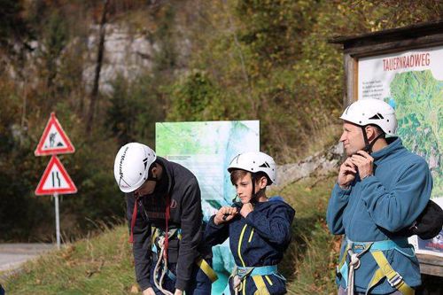 Welch ein Abenteuer! Sage und schreibe 1.000 Meter an einem Seil baumelnd durch eine Schlucht flitzen ... Der „Flying Fox“ am Salzburger Pass Lueg ist nichts für schwache Nerven, zumal man sich ja auch dazu entscheiden muss, sich in die Schlucht „fallen“ zu lassen. Aber alle 22 Burschen und deren Betreuer – unter ihnen auch P. Leonhard Maier LC und P. Joachim Richter LC – wagten den Flug.