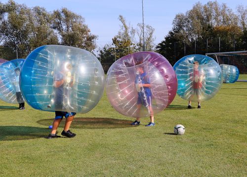 Wie der Glaube im Alltag gelebt werden kann, erarbeitete Teamleiter Max Mauser mit der Gruppe und erzählte dabei von eigenen Erlebnissen. Auch Br. Jonathan Fuhr LC motivierte die Jungen: „Im Alltag gehe es nicht nur um ein Abhaken von Vorsätzen, sondern um eine beständige Freundschaft mit Jesus.“ Anschließend fassten die Teams ihrer Ideen auf einem Blatt zusammen. Im Gebet Gott danken, ihn loben, ihn um Hilfe bitten, sich Jesus zum Vorbild nehmen und immer wieder Zeiten für das Gebet suchen: Morgengebet, Gebet zum Schutzengel beim Verlassen des Hauses, Gebete vor und nach den Mahlzeiten, Stoßgebete in besonderen Momenten, Zeit für Gott z.B. Rosenkranz, Bibel lesen, Abendgebet mit Tagesrückblick. Aber auch aktive und motivierte Teilnahme an der Messe – nicht nur am Sonntag. Versöhnung mit Gott in der regelmäßigen Beichte. Aber auch Zeugnis für den Glauben geben, vor allem auch durch Nächstenliebe, Hilfsbereitschaft, Großzügigkeit. Diese Haltungen konnten die Teilnehmer dann auch gleich am Nachmittag beim Bubble-Soccer praktizieren.