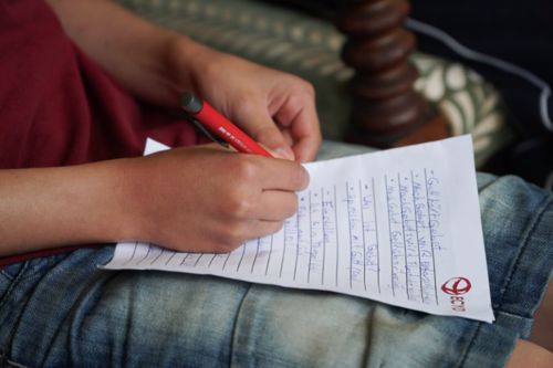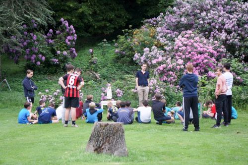 Die Jungen bekamen Tipps von ihren Betreuern: „Wenn Du beten willst, hilft es erstmal zur Ruhe zu kommen. Such dir einen Ort, wo du gut beten kannst. Und vor allem: leg das Handy weit weg“, meinte Elias. Gilles motivierte die Jungs: „Wir haben immer viele Ausreden, nicht zu beten. Das bedeutet: wir brauchen Entschlossenheit. Egal was kommt: ich nehme mir die Zeit für mein Morgengebet.“ „Es gibt vorformulierte Gebete. Die haben ihren Sinn und helfen beim Einstieg“, erzählt Simon aus seiner Erfahrung. „Gleichzeitig hilft mir aber auch das freie Gebet. Da rede ich halt einfach mit Jesus. Und ich versuche auch, auf ihn zu hören. Beim Beten sprechen wir ja mit einer Person.“ Samuel wiederum hilft es, einen Brief an Gott zu schreiben: „Da teile ich ihm einfach mit, was ich auf dem Herzen habe: meinen Dank für den Tag, meine Anliegen, meine Freuden und Sorgen. Das hilft mir, Gott mein Herz zu öffnen.“