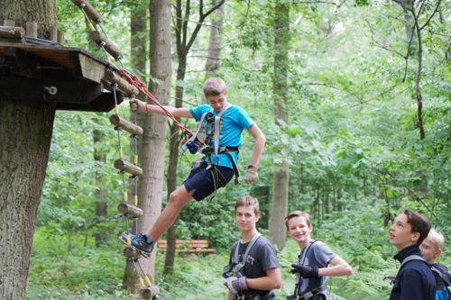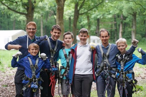 Nicht nur durch das Gebet ging es für die Jungs hoch hinaus, im Kletterwald Duisburg haben sie die Baumwipfel erklommen. Teambuilding gab es beim gemeinsamen Fußballspiel, beim Toben im Schwimmbad und während der Gemeinschaftsspiele am Abend. Am Sonntag nahmen die Jungs am „ApostelSonntag“ des ApostelHaus Ratingen teil. Die gemeinsame hl. Messe fand in Ratingen in St. Marien statt, mit dem LookingGood-Team und Familien mit anschließendem Mittagessen im ApostelHaus.