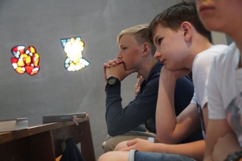 P. Raphael machte die Jungs auf die Basics aufmerksam: „Beten ist nur möglich, wenn ihr euch innerlich dazu entscheidet und es auch wollt“. Dann ging er auf die Arten des Gebetes ein: „Es gibt Lobpreis, Dank, Bitt- und Fürbittgebet, Anbetung und betrachtendes Gebet. Ein Dankgebet könnt ihr zum Beispiel ganz einfach ins Abendgebet einbauen und euch für das Erlebte, für Freundschaften und so weiter bedanken.“