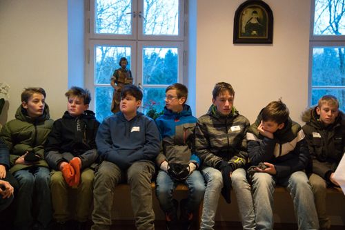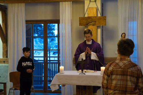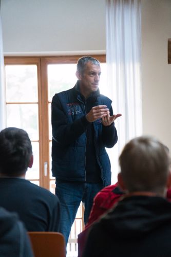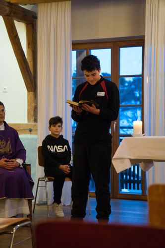 Die „Aktion Kilo“ ist für die „GetStrong“-Teams jedes Jahr wichtig, weil die Jungen zwei menschliche Tugenden einüben können: Großzügigkeit und Hilfsbereitschaft. Im thematischen Impuls verband Samuel (21, Betreuer) das am Sonntagmorgen mit der Frage, wie jeder seine Talente für andere einsetzen kann. Er erzählte z.B. von seinem privaten Engagement bei der Freiwilligen Feuerwehr und der Freude, die er auch nach aufopferungsreichen Einsätzen empfände. Nach der Schulzeit hatte Samuel aus dieser Motivation heraus ein Coworker-Jahr im Regnum Christi absolviert. „Gott lässt sich an Großzügigkeit nicht übertreffen“, ist er überzeugt. „Wenn du mit ihm großzügig bist, ist er noch großzügiger mit dir. Manchmal ist es anstrengend, hart, sich für andere einzusetzen, aber wenn du es tust, dann erfüllt es dich.“