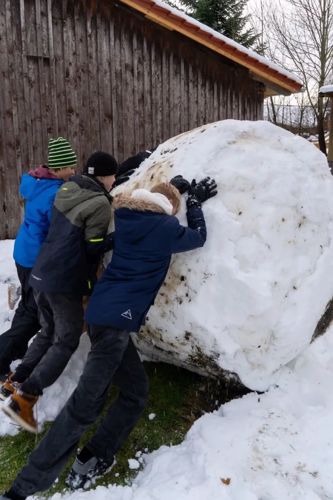 Am Sonntagvormittag folgte eine Spielezeit mit zwei Varianten: eine Schneeballschlacht, bei der sich vor allem (aber nicht nur) die Jungs austobten, sowie ein ruhigeres Spiel drinnen. Parallel war ein Kochteam im Einsatz.