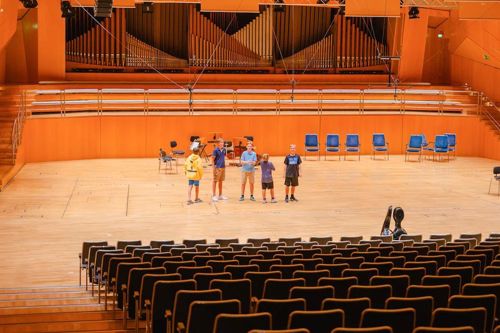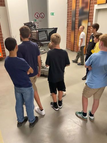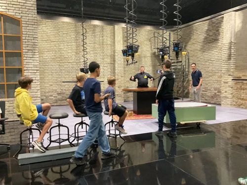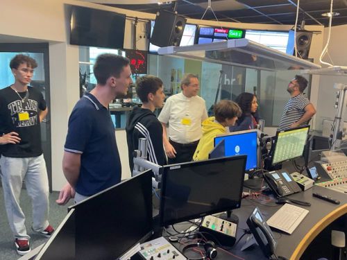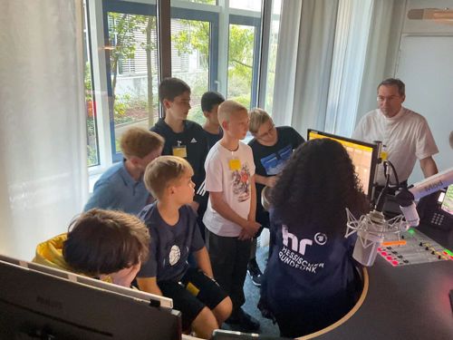 Beim Besuch des Hessischen Rundfunks in dessen Frankfurter Hauptsitz mit über 1000 Beschäftigten erfuhren die Jungen, wie nach dem Zweiten Weltkrieg der öffentliche Rundfunk entstand und besichtigen die Konzerthalle sowie die Fernseh- und Hörfunkstudios, wo sie sogar eine Livesendung miterlebten.