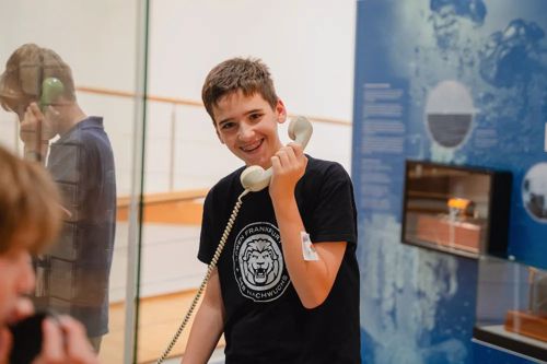 Ergänzt wurden diese Eindrücke durch den Besuch des Frankfurter Museums für Kommunikation. Dabei wurden sowohl die Entwicklung der Kommunikationsmittel als auch damit verbundene Themen wie Zensus, Manipulation oder kommunikative Fehlleistungen – beispielsweise jene, die zur Katastrophe des Untergangs der Titanic führte – thematisiert. Hier erfuhren die Jungs, dass Kommunikation nicht nur eine Frage der technischen Möglichkeiten ist, sondern eine menschliche Fähigkeit, die entwickelt werden muss.
