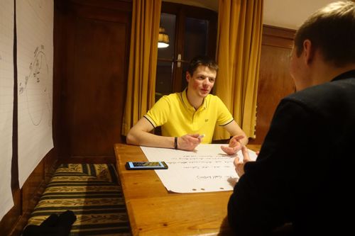 Im Zentrum der Gruppenarbeiten stand aber vor allem die Frage: Was macht einen guten Betreuer aus? Wie können wir die Teilnehmer besser ausbilden? Wie können wir die eigenen Erfahrungen, Stärken und Motivationen überzeugter vorleben und weitergeben? „Ich hatte früher Probleme mit Selbstdisziplin, sogar auf Kleinigkeiten wie Zähneputzen hatte ich nie Lust. Dann gab mein Teamleiter zu, dass er selber die gleichen Schwierigkeiten hatte und wie er sie überwunden hat. Das half mir gewaltig! Wie er möchte auch ich eine echte Stütze für meine Jungs sein“, erzählt einer der Betreuer beim lockeren Austausch am Abend.