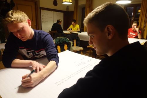 Freundschaft mit Jesus und untereinander, Reifung zu echten Persönlichkeiten, Apostel sein, eigene Fähigkeiten einbringen, Freude am Glauben und an der Gemeinschaft waren die Hauptaspekte, die beim Erarbeiten einer gemeinsamen Vision von GetStrong immer wieder auftauchten. „Es ist total beeindruckend, wie wir die gleiche Vision in uns tragen. So können und wollen wir wirklich etwas bewirken“, staunt auch Michael aus Franken, der das Wochenende organisiert. Diese gemeinsame Vision und die neu belebte Motivation tragen die Betreuer nun in ihre verschiedenen Teams zu den übrigen Betreuern und Jungs.