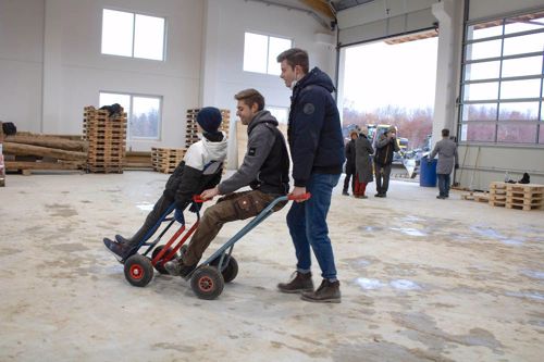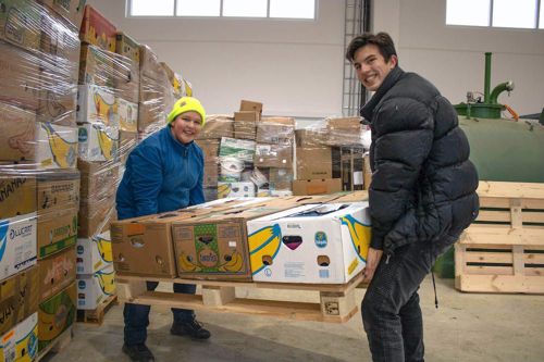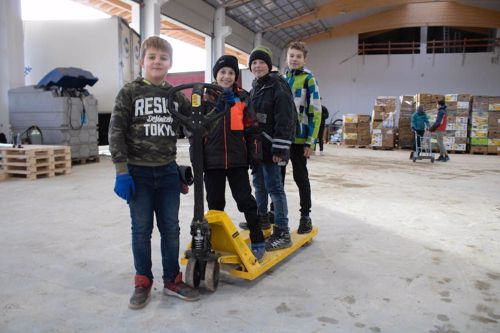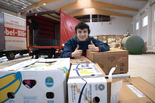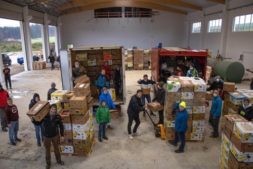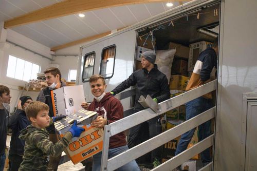 Im Anschluss erzählte Hubert Zeltsperger, der vor über 25 Jahren die Organisation „Junge Leute Helfen“ im Chiemgau gegründet hatte, von den Aktivitäten und Aktionen zur Bekämpfung der Armut in Südost-Europa. „Junge Leute helfen eV“ ist ein Netzwerk von kirchlichen Gruppen aus rund 120 Pfarreien zwischen Inn und Salzach. „Mit viel Liebe haben auch heuer wieder Familien und Pfarrmitglieder Bananenkisten mit haltbaren Lebensmitteln, Spielzeugen oder Gewand gefüllt“, führte er fort. „Diese werden wir heute einsammeln und sortieren“. Ganz besonders hob Hubert Zeltsperger die Bedeutung des christlichen Glaubens für die Aktion hervor: „Unsere Kraftquelle ist das Gebet“, betonte er. Im Anschluss halfen die Jungs von vom „GetStrong“ bei der jährlichen Verladeaktion. Sie nahmen die Pakete entgegen, die von den umliegenden Pfarreien gesammelt wurden und lagerten diese auf Paletten in einer Lagerhalle. Insgesamt sammelte die Aktion „Junge Leute helfen“ im Jahr 2021 etwa 20.000 Bananenkisten mit Hilfsgütern, die im kommenden Januar per LKW zu den verschiedenen Sozialstationen am Balkan ausgeliefert werden.