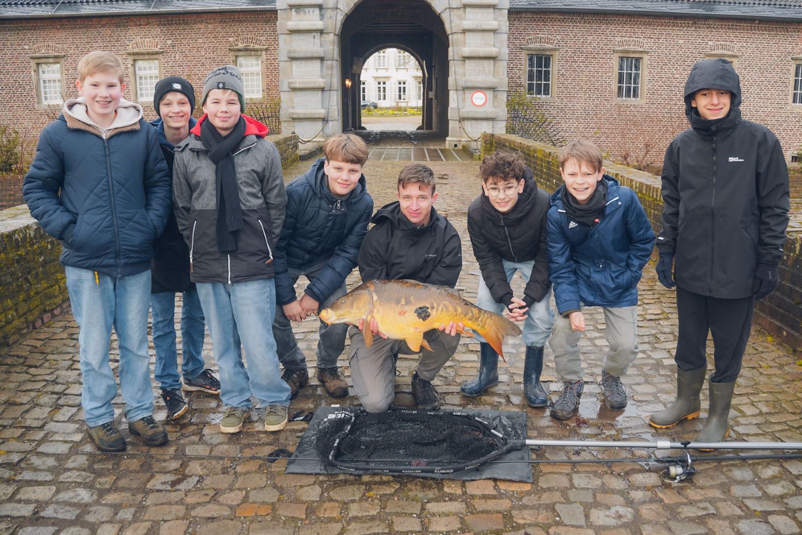 Beim Angeln lernten die Jungen zunächst, welche Ausrüstung dazugehört und worauf es ankommt. Die Begeisterung stieg noch einmal deutlich, als beim Ausprobieren tatsächlich zwei Karpfen an den Haken hingen.