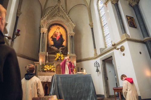 Die Heilige Messe eröffnete das Wochenende und in der Predigt stellte P. Raphael Ballestrem LC ein Bild ins Zentrum, das die Jungen aus ihrem Alltag gut kannten: Menschen gehen zum Zahnarzt, bringen das Auto zur Inspektion oder lassen vor dem Frühjahr den Rasenmäher kontrollieren. Hinter all dem steht der Wunsch, dass alles gut funktioniert.
