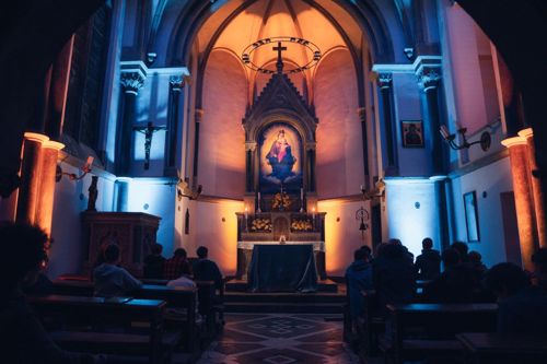Am Abend führte der Weg in die Anbetung. Nach einem intensiven Tag voller Eindrücke und Aktivitäten fanden die Jungen hier einen anderen Ton: Stille, Gebet und die Nähe zu Jesus. Viele nutzten in diesem Rahmen und empfingen das Sakrament der Versöhnung.