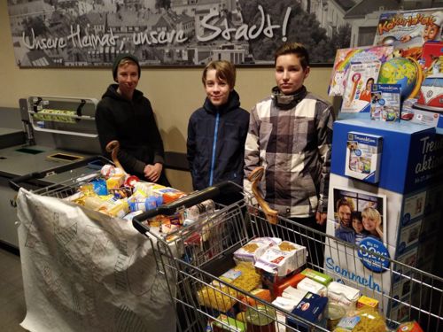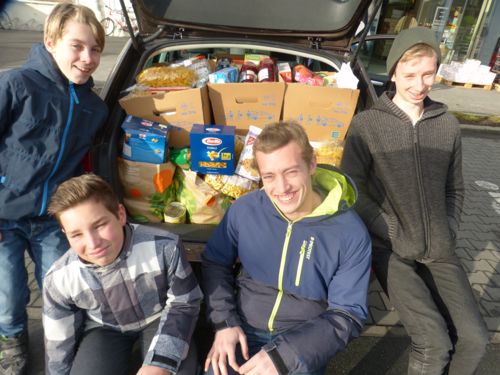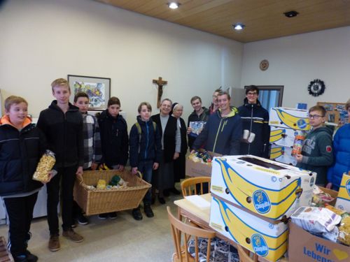 Im Advent traf sich das GetStrong-Team von Franken dieses Mal zur „Aktion Kilo“ in Würzburg. 13 Jugendliche luden an verschiedenen Supermärkten der Stadt dazu ein, ein Kilo mehr an haltbaren Lebensmitteln für Arme und Bedürftige einzukaufen. Für vier Jugendliche war es das erste Mal und es kostete sie zunächst einiges an Mut und Überwindung, auf die Menschen zuzugehen, um sie zur Teilnahme einzuladen. Sehr ermutigend war es, als man ihnen sagte: „Wir kennen Eure Aktion noch vom letzten Jahr!“ und „Toll, dass Ihr diese Aktion macht!“ Schließlich konnte das Team insgesamt etwa 400 kg Lebensmittel sammeln, die den Erlöserschwestern in Würzburg, für deren Wärmestube St. Elisabeth, übergeben wurden. Schwester Hilgaris erklärte den jungen Leuten anschließend worum es bei der Wärmestube geht, die Armen, Obdachlosen, Einsamen und Alten nicht nur eine warme Mahlzeit, sondern mit der Liebe der Schwestern immer auch ein offenes und warmes Herz anbietet. „Ohne Euren Einsatz hätte heute diese Sammlung nicht stattgefunden!“, sagte P. Martin Baranowski beim anschließenden Gottesdienst mit den Teilnehmern der „Aktion Kilo“ in der Klosterkirche, „So lädt Gott uns ein, dass der Glaube an ihn, einen Unterschied in unserem Leben macht und die Welt verändert.“