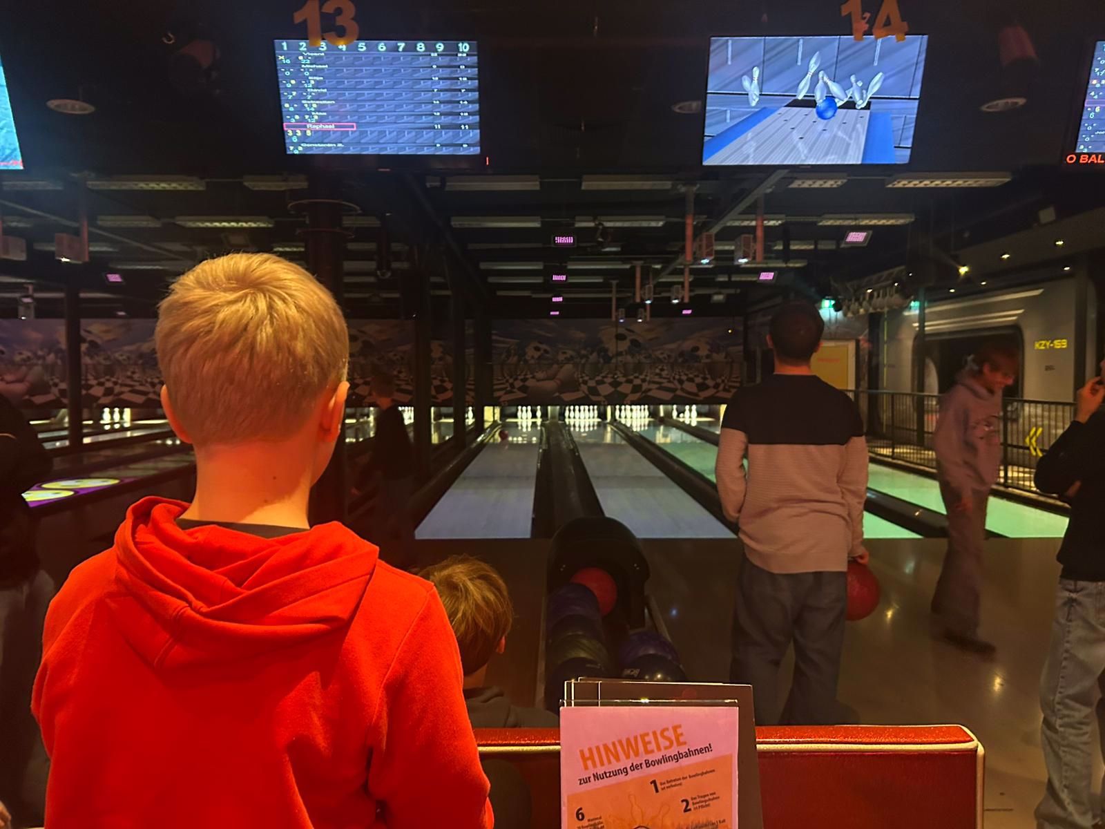 Beim anschließenden Bowling-Ausflug zeigten Teamleiter den Jungen Tricks und Techniken und sorgten für sportliche Motivation.