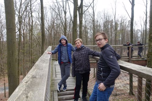 Die Heiligkeit ist kein individualistisches Projekt, sondern ein gemeinsamer Weg, der auch Gemeinschaft erfordert. Die Teamfähigkeit übten die Teilnehmer in einem vielseitigen Geländespiel ein. An dessen Abschluss stand der Besuch des Baumwipfelpfades Steigerwald. Auf einem über einem Kilometer langen Holzsteg lernten die Jungen aus verschiedenen Perspektiven den Wald und seine Bewohner kennen. Beim Aufstieg des 42 m hohen Aussichtsturmes war dann nicht nur Ausdauer, sondern auch Mut gefragt, da einige ihre Höhenängste überwinden mussten, um zum gemeinsamen Foto auf der Spitze zu gelangen.
